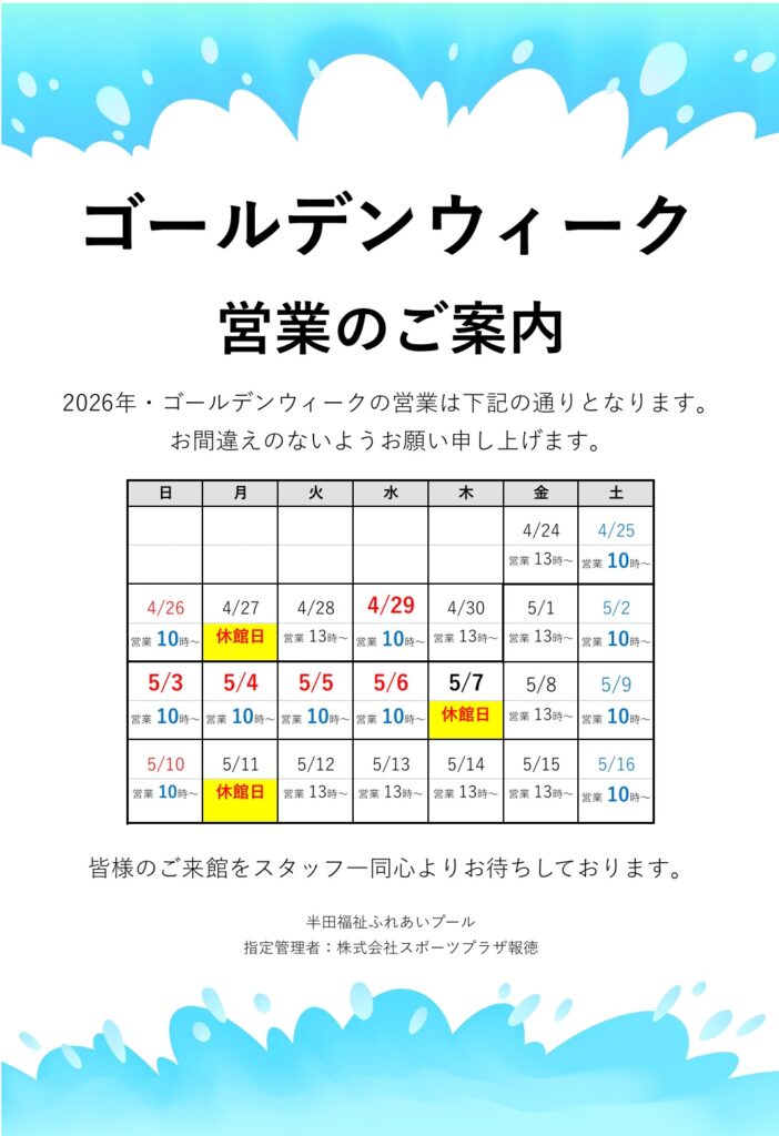 - ルールについては、「お知らせ」欄にある「プールの持ち込み物」をご参照ください。